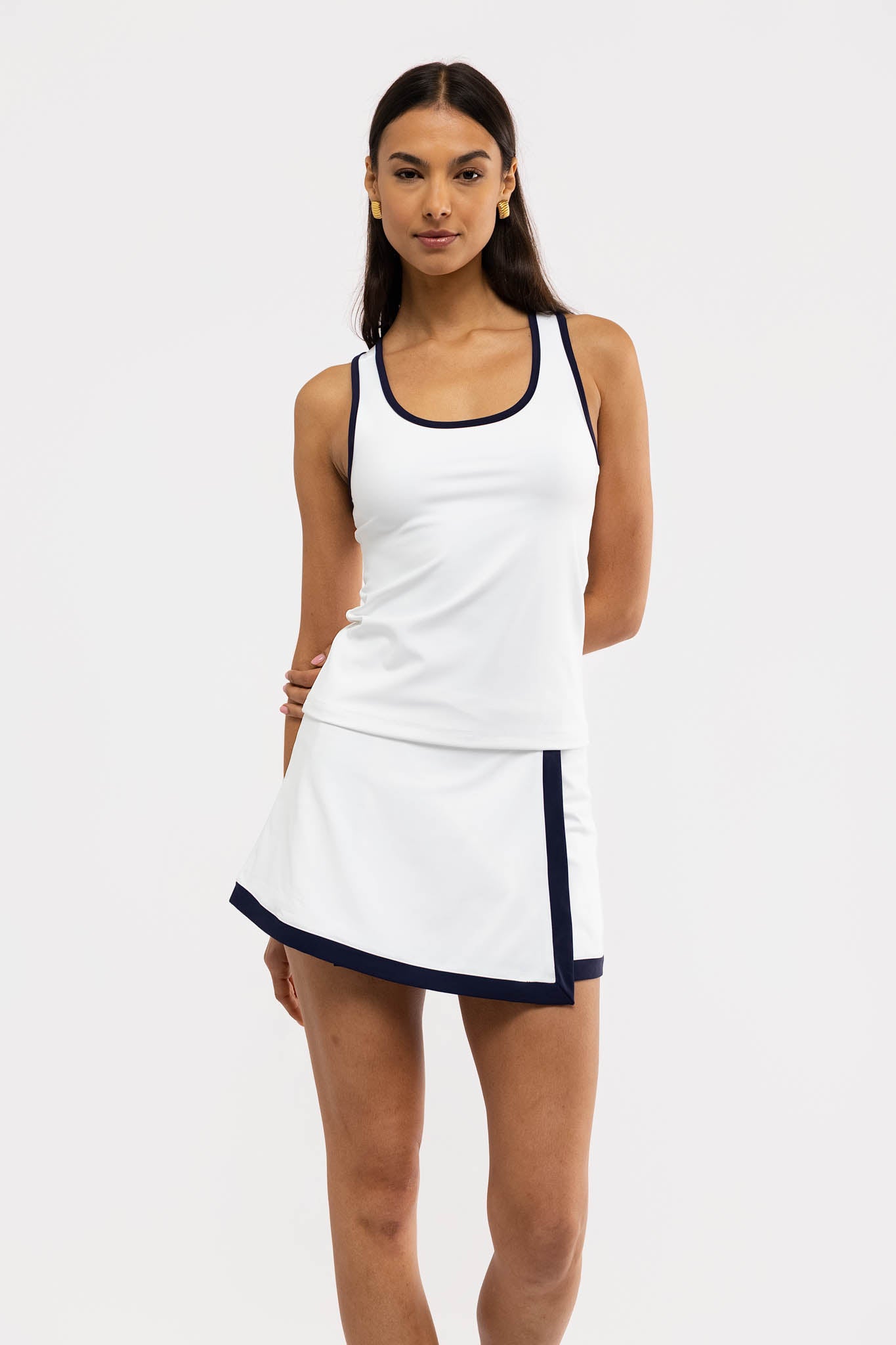 Get noticed in the Birdie faux wrap skort. Pair with the Everly Tank for a flawless (game) set (match).