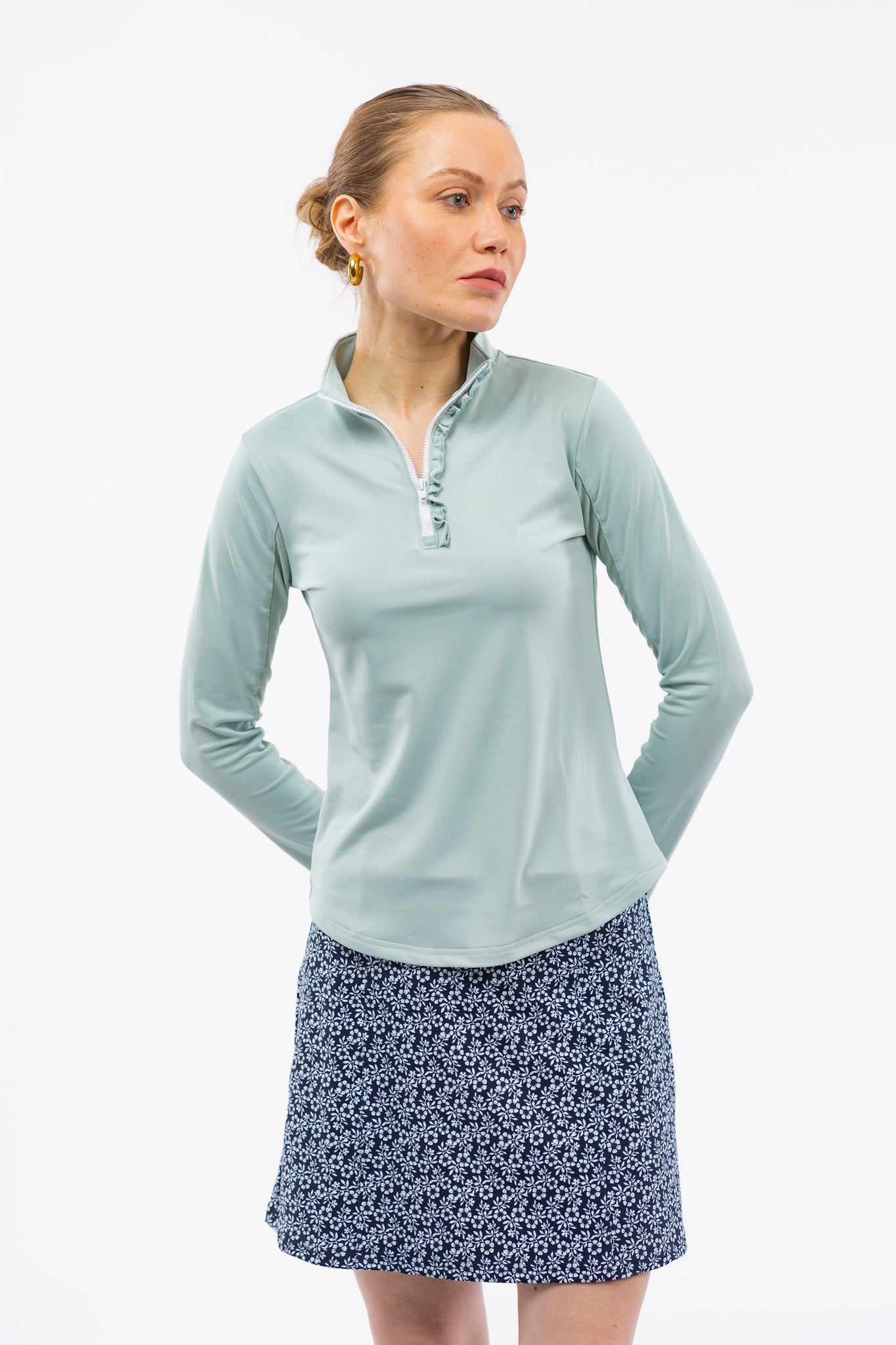 The Ava 1/4 zip pullover is the perfect layer for early mornings on the golf course or tennis court.