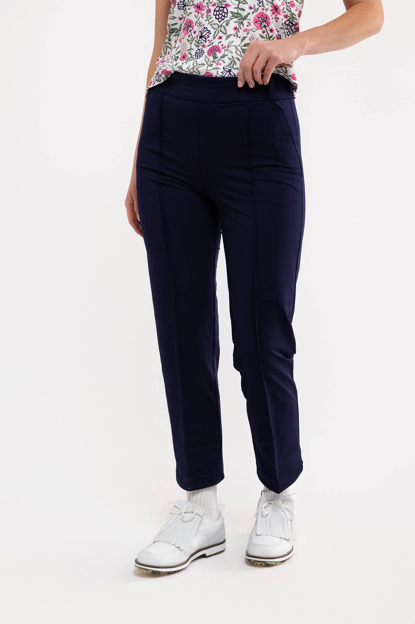 Meet the Portia Pant. Crafted from a performance stretch woven fabric, the Portia features a tailored, athletic-style design with a sleek silhouette and functional pockets.