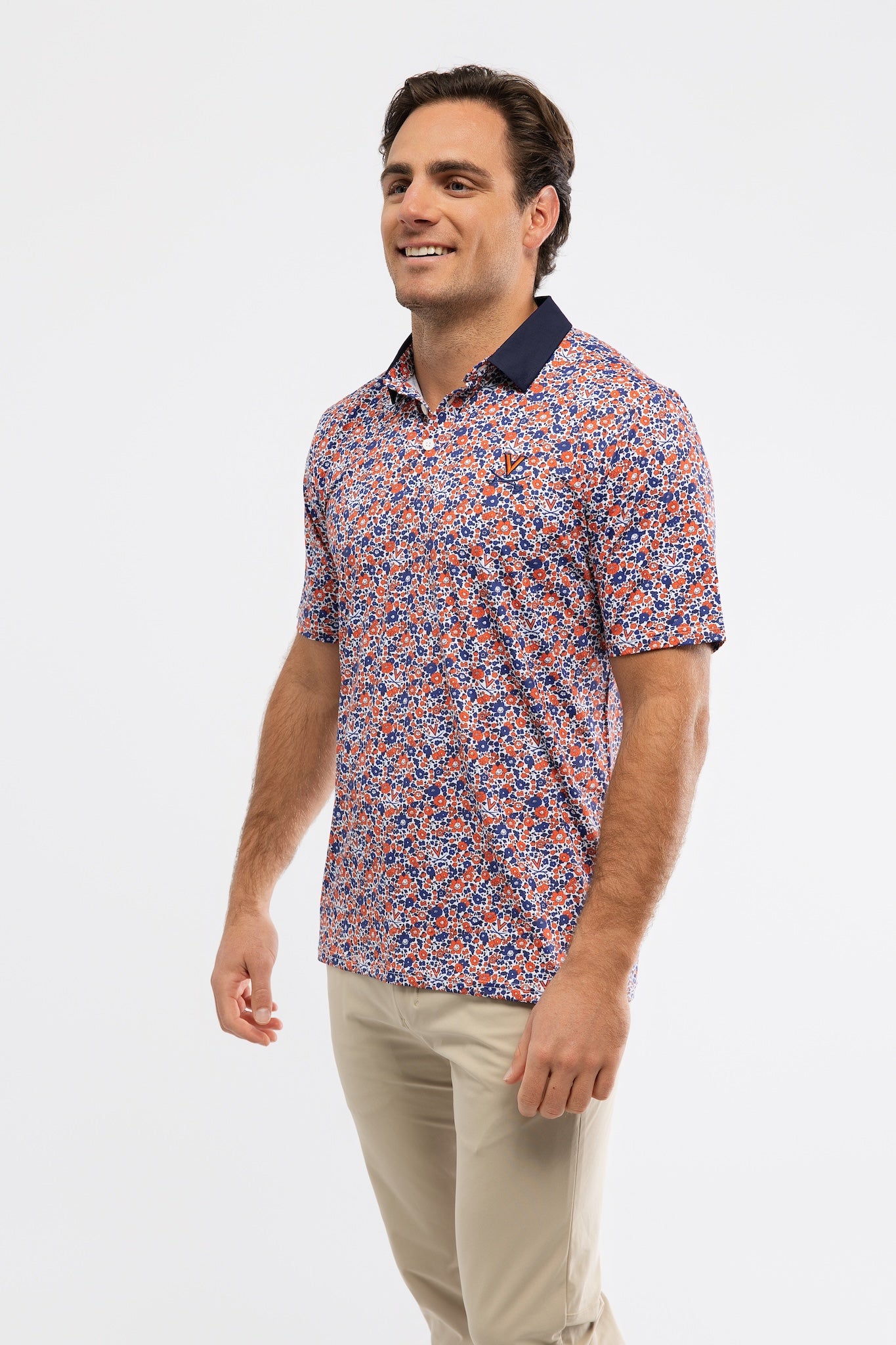 Shown here in UVA Poppies. Made in Lightweight Performance Stretch fabric.