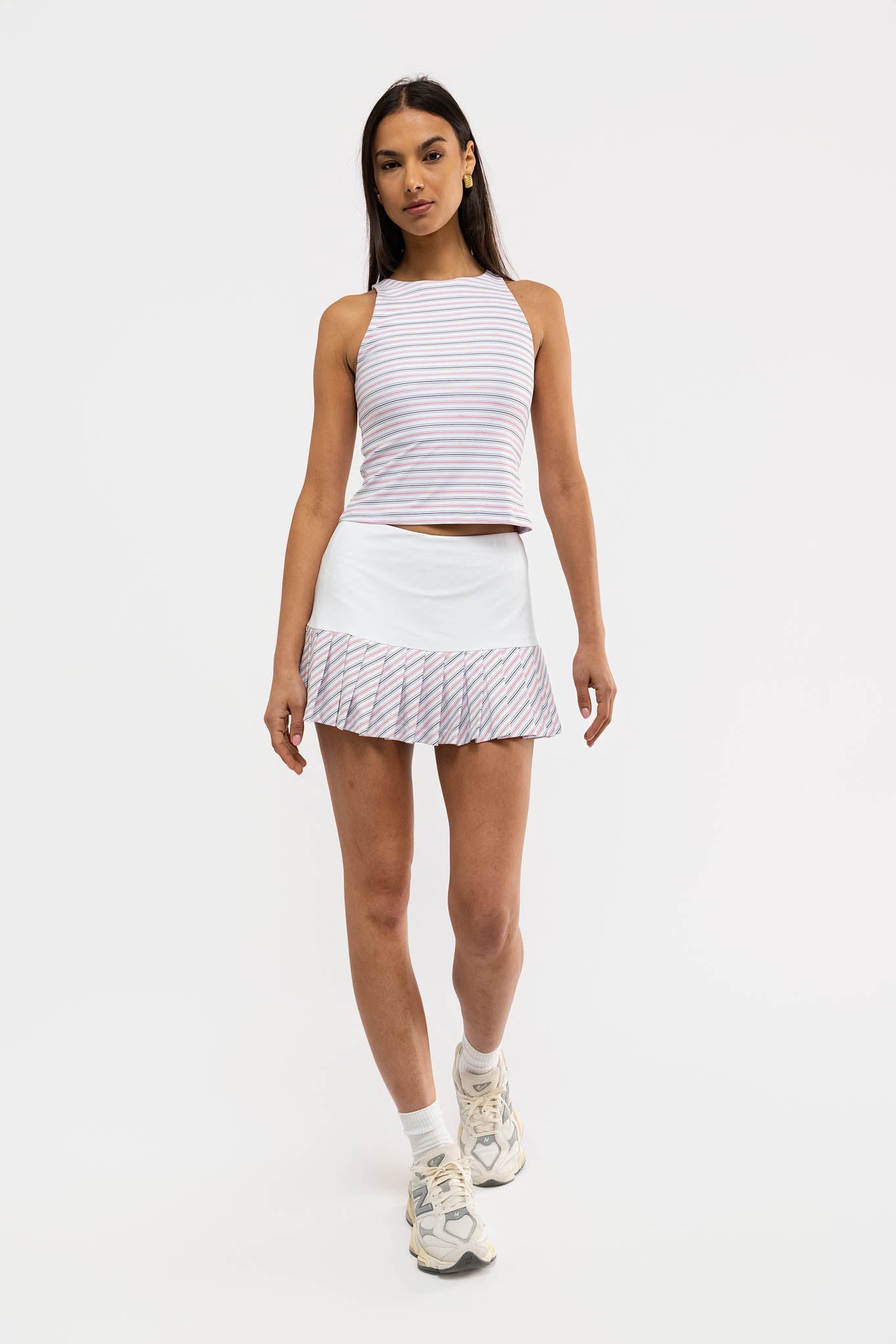 Meet the Jessie Tank. Crafted from a performance stretch fabric, the Jessie features a fitted, high-neck style silhouette, designed with built-in support.