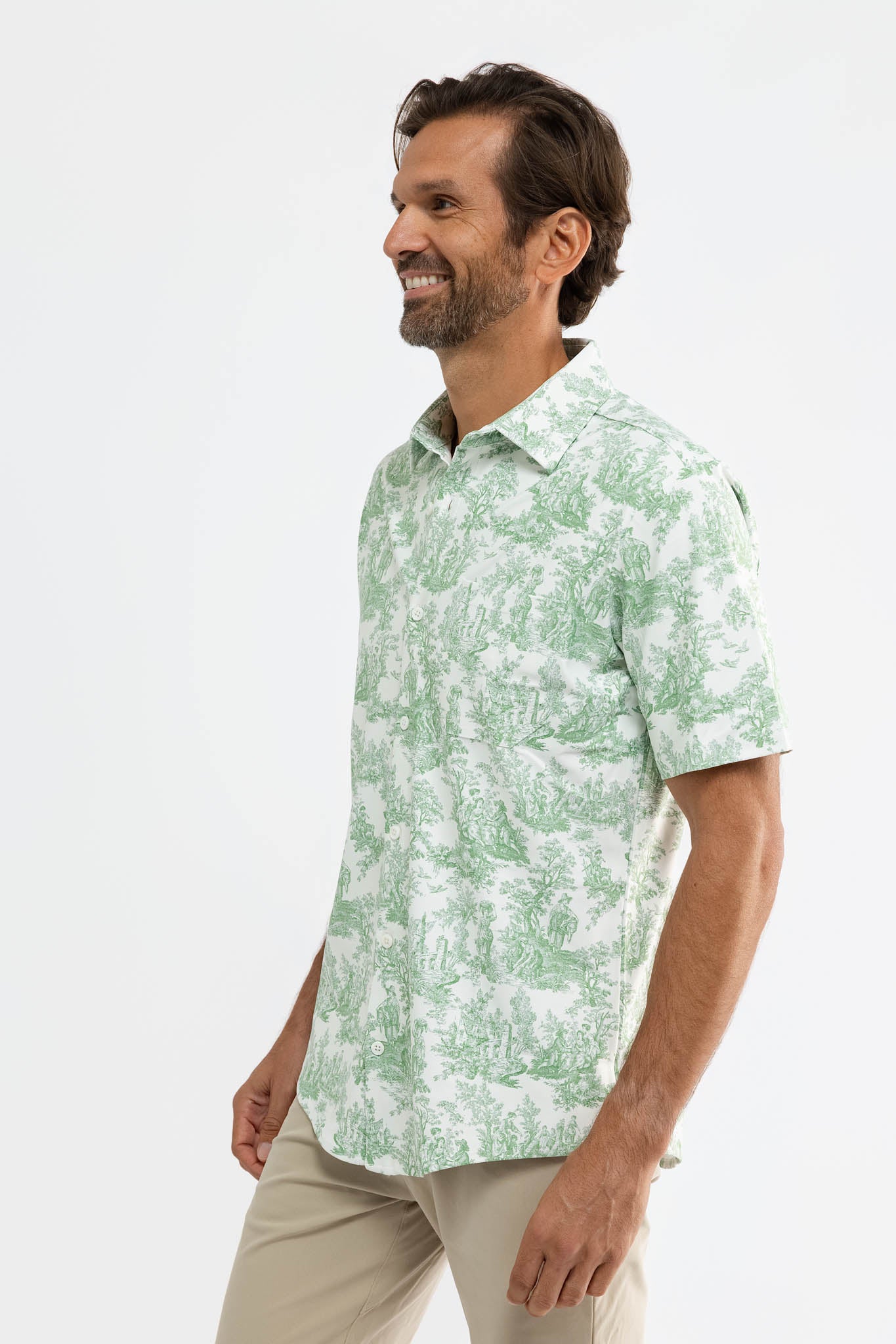 Meet the Boatyard Button-Down. Crafted from our S&Q Stretch fabric, the Boatyard features a versatile button-down style with a collared neckline and chest pocket.