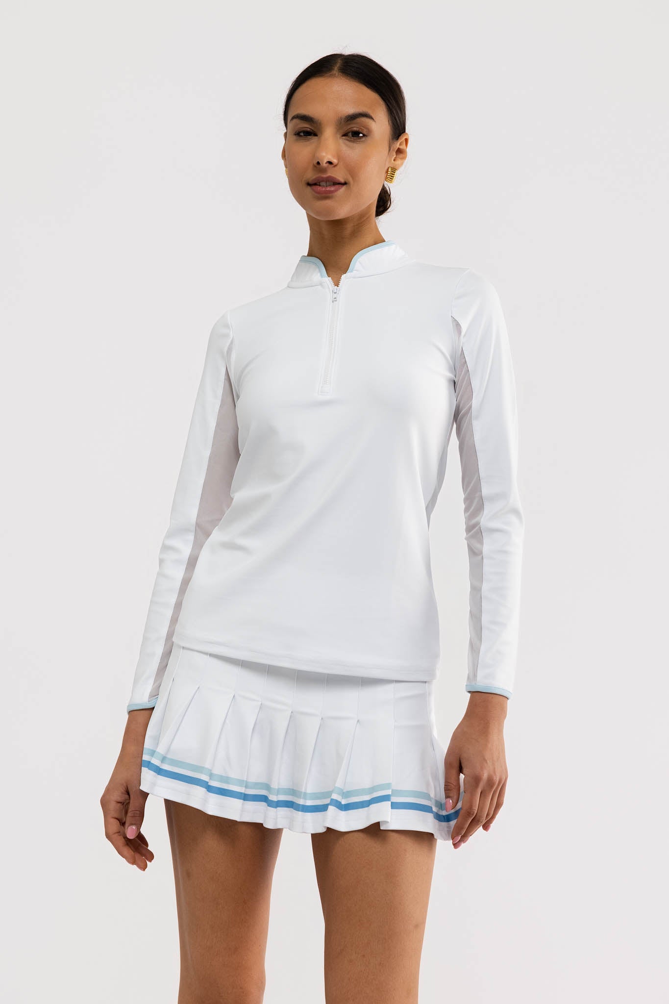 Meet the Carey Quarter Zip. Crafted from our S&Q Stretch fabric, the Carey features a classic, lightweight quarter-zip style with a functional zipper and breathable mesh panels under the arms.
